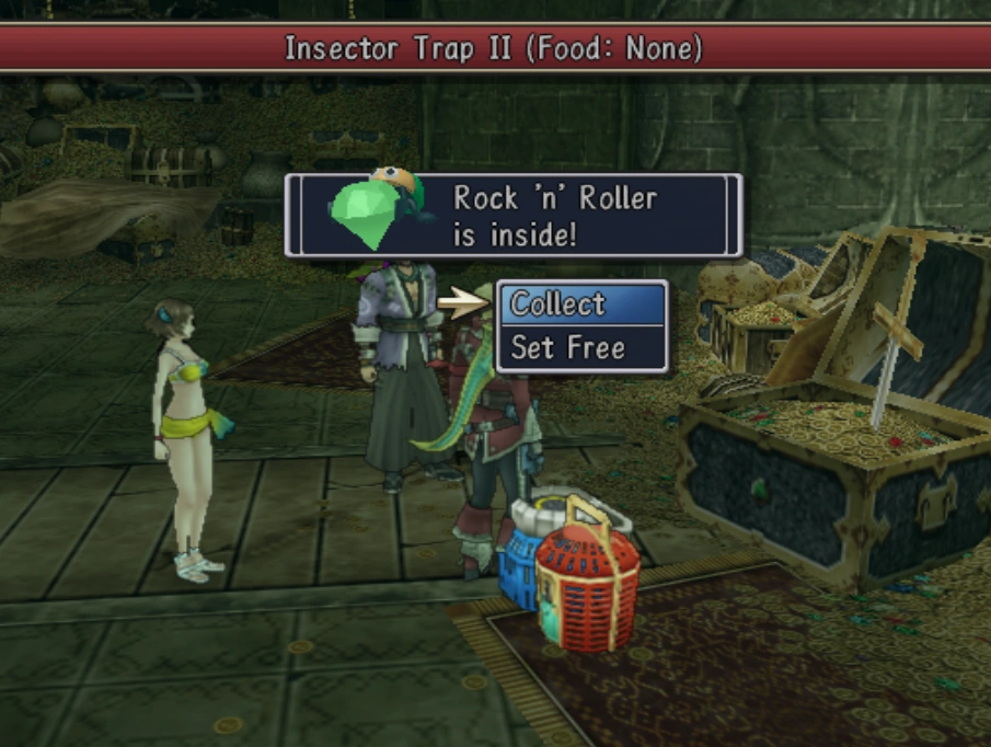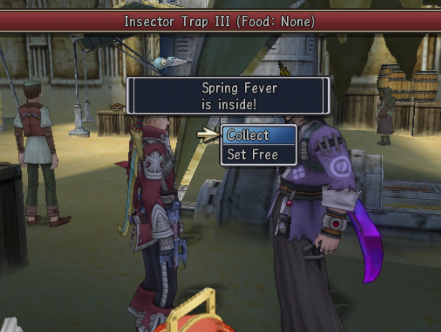 After 5 minutes your Info Edge will make a sound. Check all 3 traps to see if you got the Insector you wanted. If not simply reset the traps again. Note that when you have caught an Insector it's gender will be determined when you collect it in your cage. So you should always save before collecting trapped Insectors. This way you can reset/ load until you obtain the desired gender. The Insectors will steal your bait or run away if you are using the wrong bait to trap them. If you are trying to trap the high ranked Insectors it might takes a few tries before you get them. Once you have caught an Insector you can place them in your cages. Each cage can hold 5 Insectors so at most you can only hold 15 Insectors using three cages.