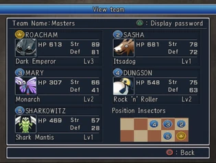 The above password will load a team name Dragoons consisting of: Dark Emperor, Fairy Tot, Escargoboom, Tarantuqueen, Flipperbug